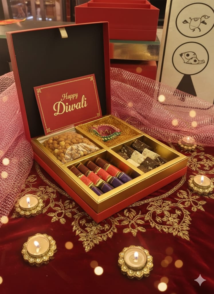 Chakkiwalle Diwali Hampers | 4 Cavity Choco Nut Bites with Diya | Diwali Hamper | Sweets | Gifts | Family